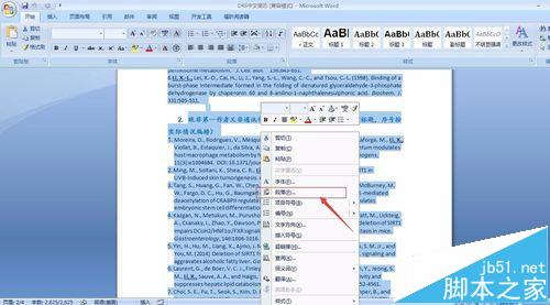 1、按[Ctrl+A]组合键选定全部文档,右击鼠标,选择菜单中的[格式],在选择[段落],进行段落设定;