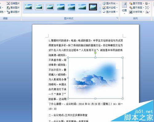 9、看到了没,我刚才的图片成了这个样子,是不是更好看了呢,现在我们就设置一下图片格式进行排版吧!
