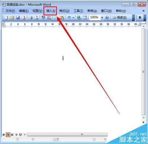 2、在文档的菜单栏里点击"插入" 如图