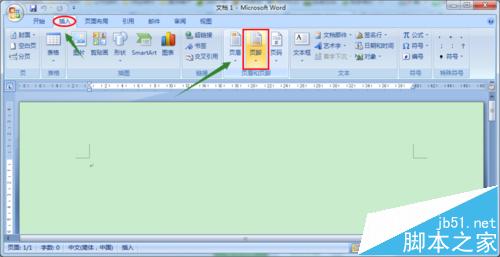 1、首先,我们打开word2007软件,然后在工具栏依次选择"插入"-"页脚",如图;