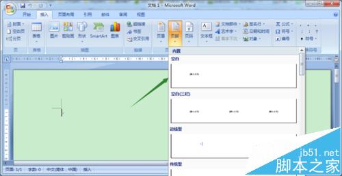 2、点击页脚以后,我们会看到系统内置有多种页脚模板,我们选择最上面的"空白页脚",确认以后就会在文档的最下面看到了插入选项,见下图;