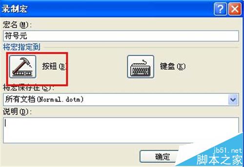 2、弹出"录制新宏"对话框,输入宏名"符号元",单击"将宏指定到"--"按钮"