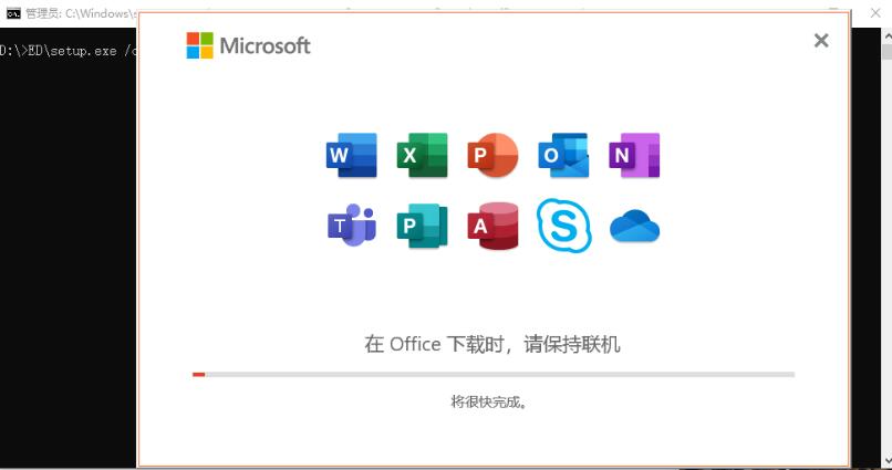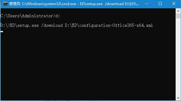 7、安装365:在命令提示符窗运行,例如D:EDsetup.exe /configure D:EDConfiguration.xml,以实际为准