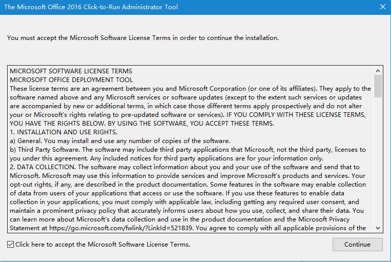 1. 下载并安装office 部署工具,双击打开软件,同意许可,这时候会自动解压到您指定的文件夹