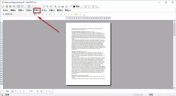 3、将PDF文件添加到软件后,我们在界面上方找到"页面"选项,点击该选项,其下方会出现一个下拉框。
