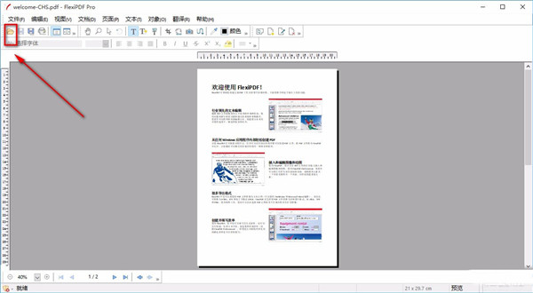 只需单击一下,FlexiPDF NX Universal 即可将整个页面翻译成多种语言。最重要的是,页面的原始布局在此过程中完全保留。FlexiPDF 2022使用教程1、首先打开软件,我们在界面左上角找到文件打开按钮,点击该按钮就可以打开文件添加页面。