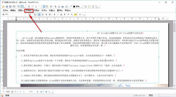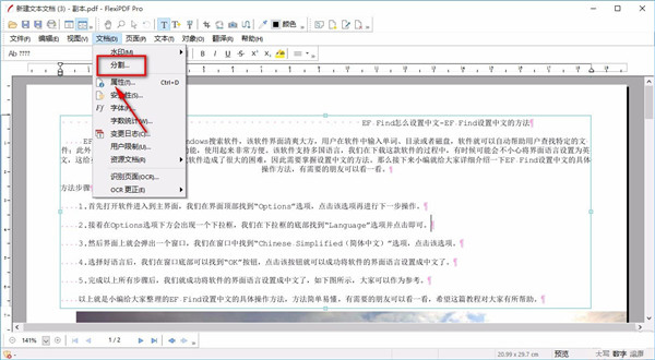 3、将PDF文件添加到软件后,我们在界面上方找到"文档"选项,点击该选项,其下方会出现一个下拉框。
