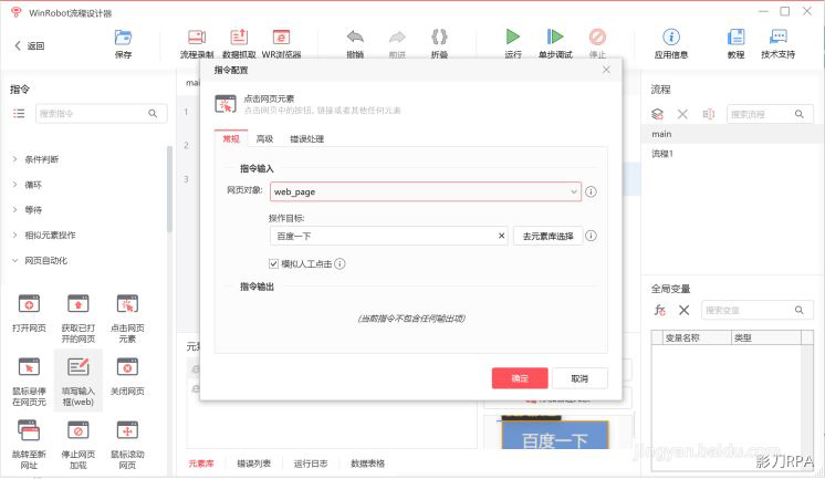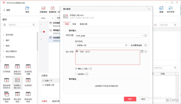 步骤二:拖入【填写输入框(web)】指令,进行指令配置