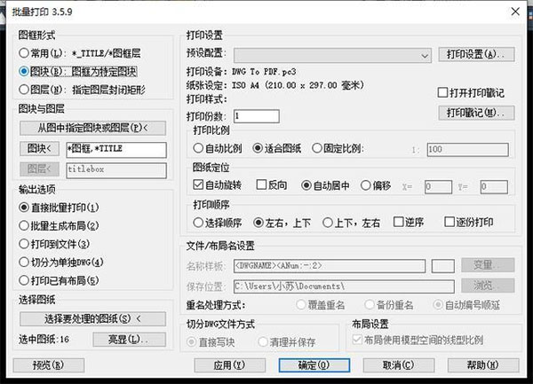 这里要说明一下软件虽然是批量打印CAD图的工具,图框呢尽量自己制作,可以把它存放为图块,还可以根据根据自己的需求来缩放旋转。但是如果你想亮显范围batchplot暂无此功能,所以就不能实现了。如果真的想要这个亮显范围的话,手动输入也是可以的,但是可能会有些耗时。