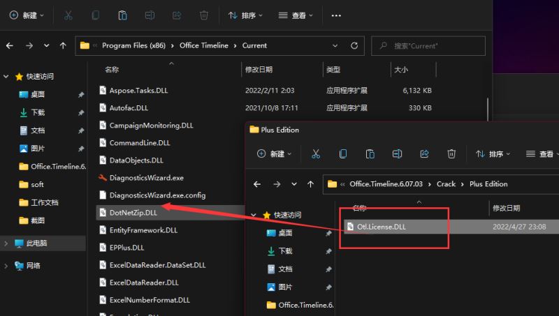 5.将复制的.DLL文件复制到C:Program Files (x86)Office TimelineCurrent文件夹下替换,如图