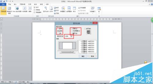 5、在弹出的对话框中选择不同的百分比或页宽等都会有不同的效果哦