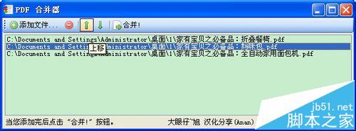 5、可以通过"上移"和"下移"按钮调整pdf文件的顺序,这个顺序就是最终生成的pdf文件中内容的先后顺序。
