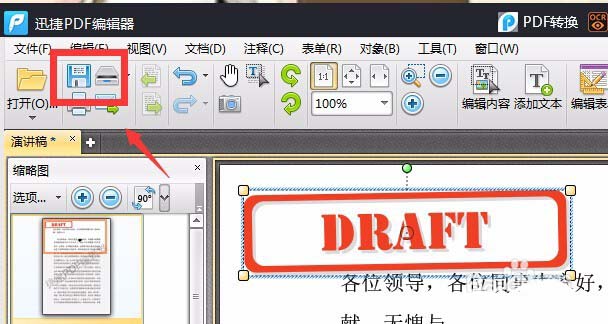 4、然后在文件左侧的缩略图中选择自己想要添加的页面,悬着好之后我们就可以移动鼠标相应的位置,在那里就可以添加图章了!