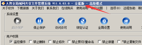 至此,我们就成功在虚拟机运行了大势至共享文件权限管理软件的正式版。值得注意的是:在运行大势至共享文件管理系统期间,不能拔掉U盾,否则会导致程序返回到试用版状态,运行七天之后将会界面功能锁定,无法再次使用。