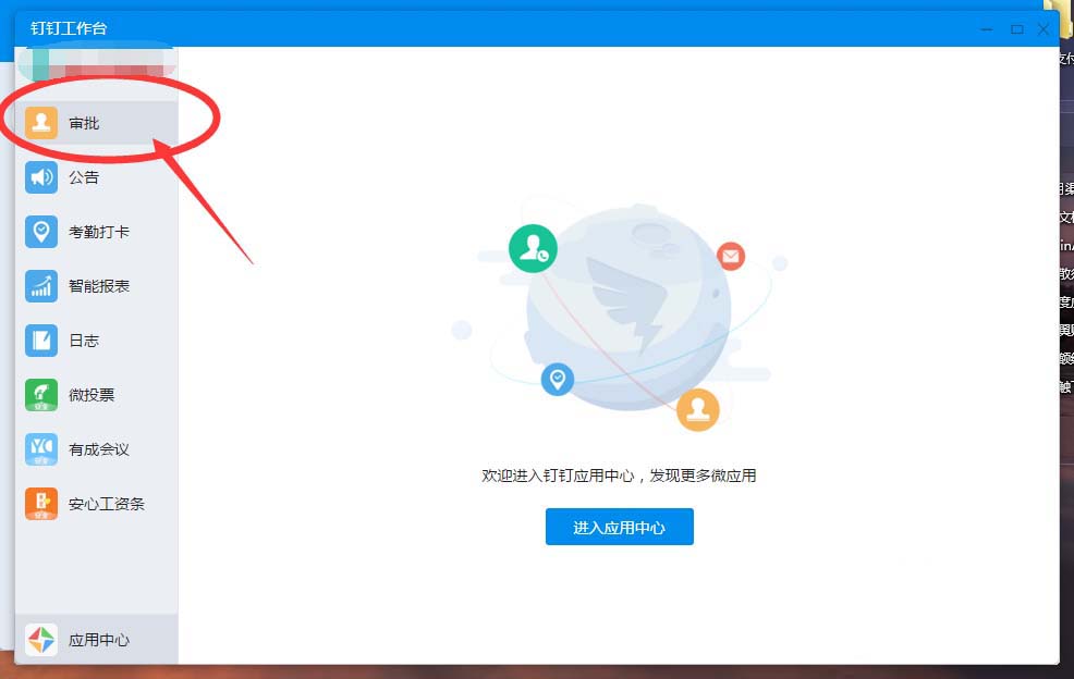 3、点击"工作"台之后,弹出工作台——点击"审批",如下图: