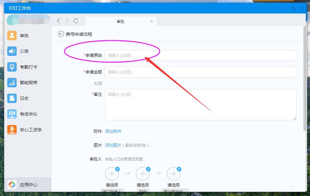 第二步:申请原由。"申请原由"即所申请费用的原因理由;如下图: