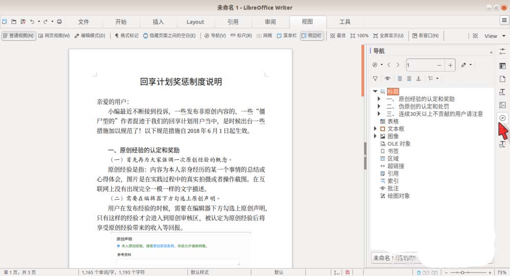 以上就是LibreOffice Writer导航侧边栏中启用内容导航的教程,希望大家喜欢,请继续关注脚本之家。