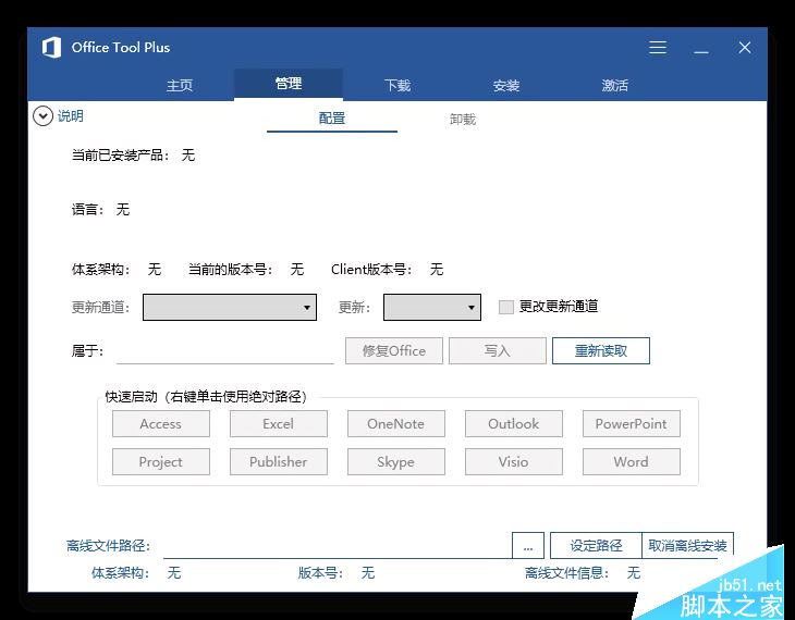 通过 OTP,你可以查看当前电脑中安装的 Office 的信息,配置当前 Office 的更新。还可以一次性卸载多个版本的 Office,删除某个语言包。