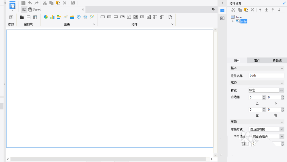 1、打开FineReport设计器,新建空白的决策报表,注意body样式的设置方法,如下图所示: