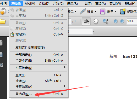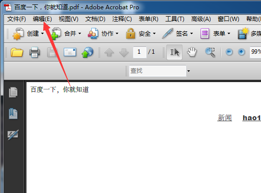 2、然后进行点击了的Adobe Acrobat的菜单中的编辑的菜单。