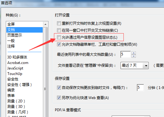 5、进行点击了文档的选项之后,进行勾选上允许通过用户信息设置图层状态的选项。