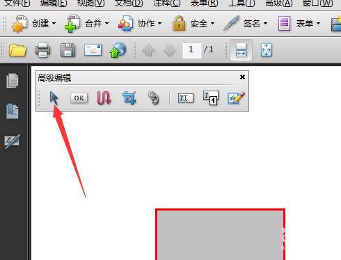1、首先,打开一个Adobe Acrobat的打开pdf的文件当中,点击高级编辑箭头的选项。