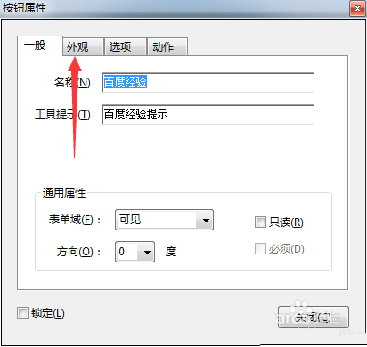 3、就会弹出了一个按钮属性窗口当中,点击外观的选项。