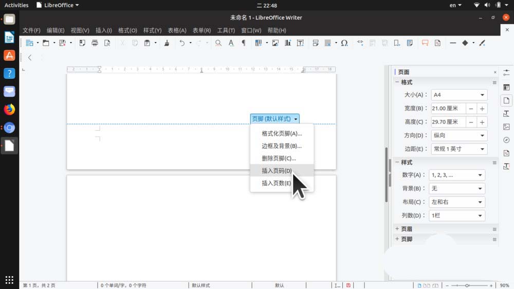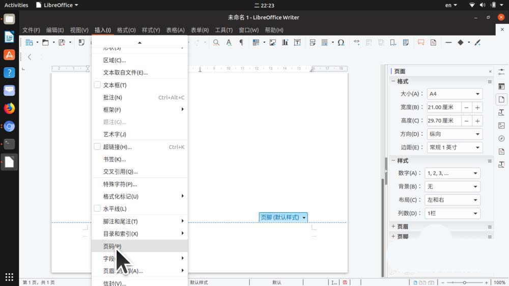LibreOffice Writer 6.1中将插入页码的功能整合到了页脚的快捷菜单中,使插入页码变得方便快捷,该怎么插入页码呢?下面我们就来看看详细的教程。