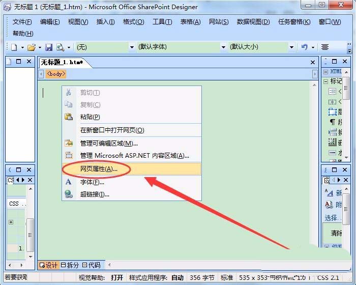 2、软件窗口的编辑区右击,选择网页属性选项。