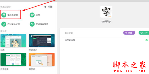 2、回到快速启动页的界面,用户可以在左边一栏的功能中看到"插件百宝箱"选项,进行点击即可,如下图所 示: