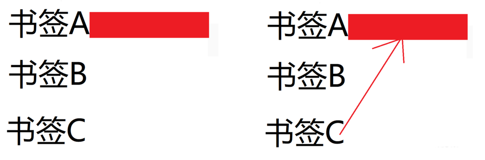 2、降级书签。选中书签,拖放到某一书签"后方的空白处"。