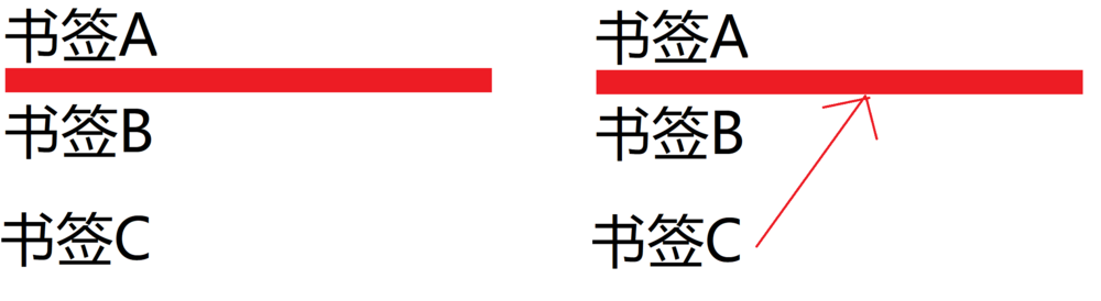 3、升级书签。选中书签,拖放到书签和书签的间隙中。