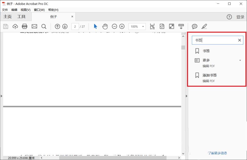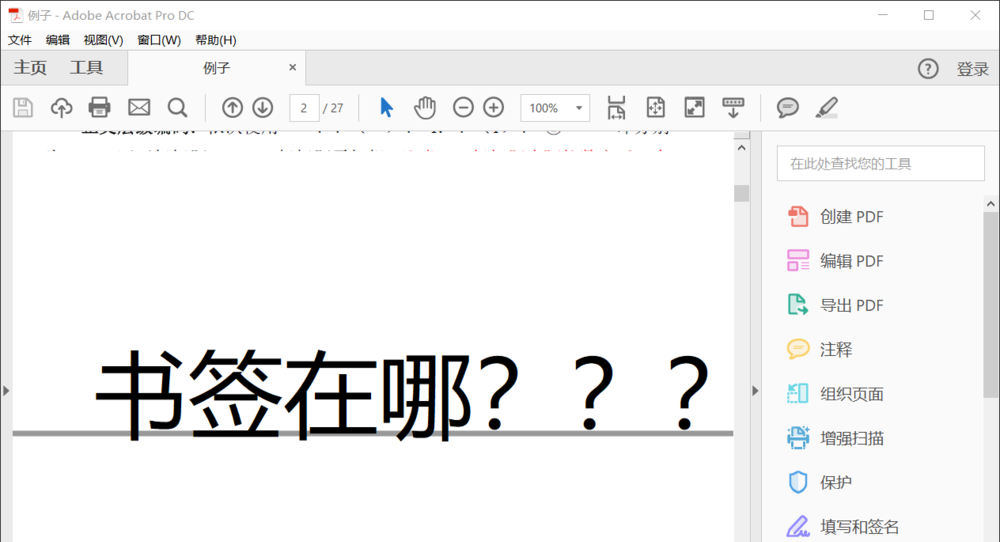 1、能有的PDF用Adobe Acrobat DC打开之后,默认不显示书签。您可以查找工具,来找到书签。