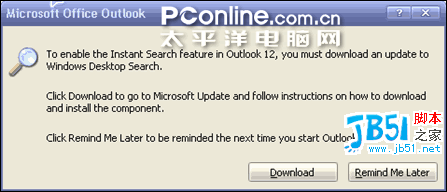 安装之后,使用Outlook将会更容易查找信息与文件资源。当你使用了Windows Vista,会整合得更完美,而不会再出现这种提示了。