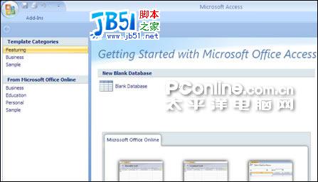 Access使得数据库管理大大的简化。新版本的Access也使用了“Ribbon”工具栏功能,整个操作界面更紧凑。新建数据库时,也会有许多的模版和样例供你选择(如图五):