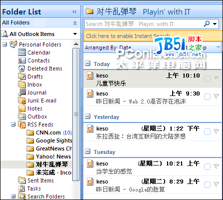 图四 Outlook 新增的 RSS 订阅功能(+点击查看大图)