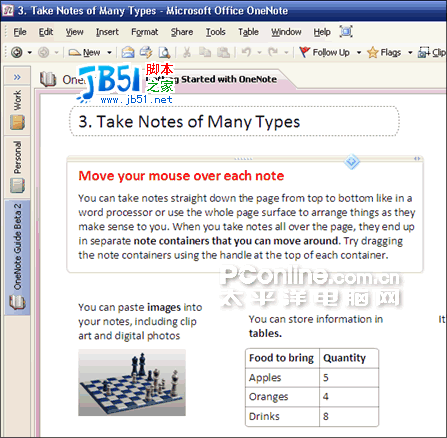 通俗简单地说,OneNote是一个用电脑文字涂鸦的软件。你可以随意添加文字,没有位置与层次的限制。利用它还可以与Office 2007 beta 2的其它组件进行整合,相互引用,快速查找信息。笔者认为最好的地方就是它文字处理的自由度,你可以按照自己的思维需要,随意拖动文字及其它元素,按照思维逻辑与结构脉络进行编排,感觉有点像一款开源的思维软件——FreeMind(有兴趣的网友可以自行搜索一下)。