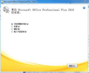 在控制面板中打开程序和功能,选择Office 2010右键点击更改,再打开Office 2010安装程序-选择"添加或删除功能"