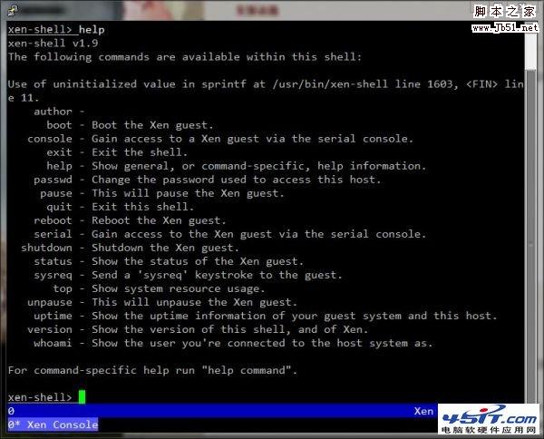 3、输入help命令,可以列出XEN-SHELL的全部功能。