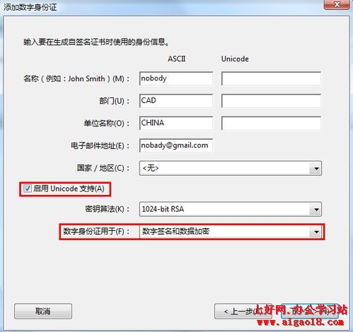 设置好相关信息,如果有中文内容的话请勾选"启用Unicode支持"选项