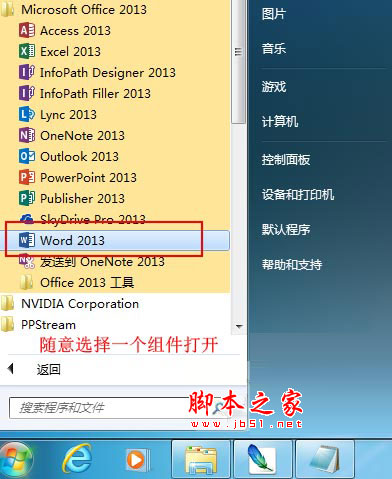 8、下面是激活office2013的操作步骤,开始菜单随意选择一个组件打开,如word2013;