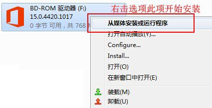 4、加载成功后,右击选择"从媒体安装或运行程序";