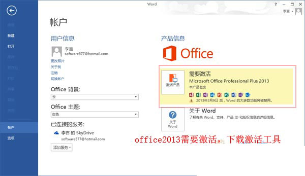 11、再次打开word2013,软件已经显示为"激活的产品"。