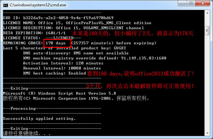 2、当激活office2013时,电脑提示"No Office KMS licenses were found on the system."的错误提示语,中文翻译就是:没有在系统上发现Office KMS许可。小编可以明确的告诉大家:office版本不对,请选择VOL版本。