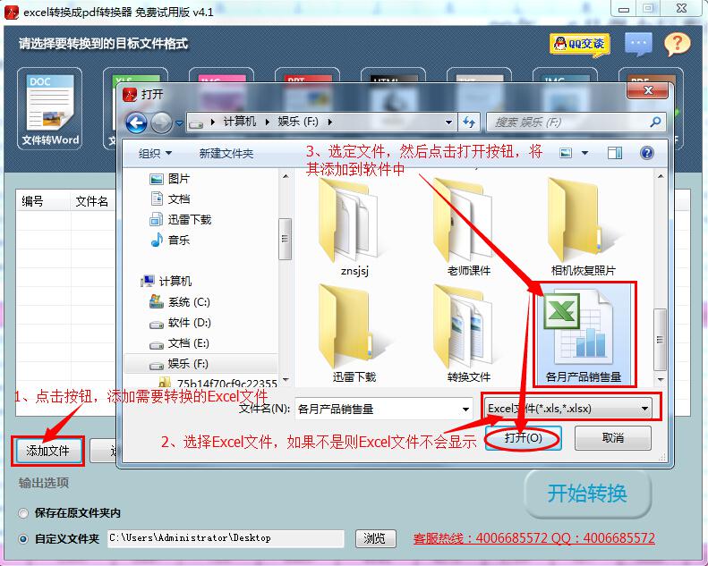 第三步:点击左下角的"添加文件"按钮,把需要转换的Excel文件添加进来,一次可添加多个文件。