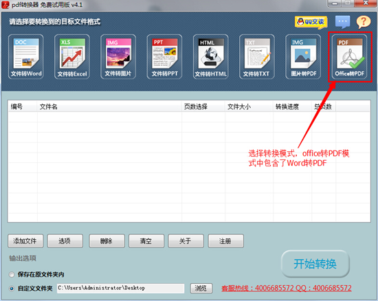 第一步,打开迅捷Word转换成PDF转换器,选择您需要使用的模式,如果需要将word文件转化为PDF文件,点击右上方的"office转PDF"模式。