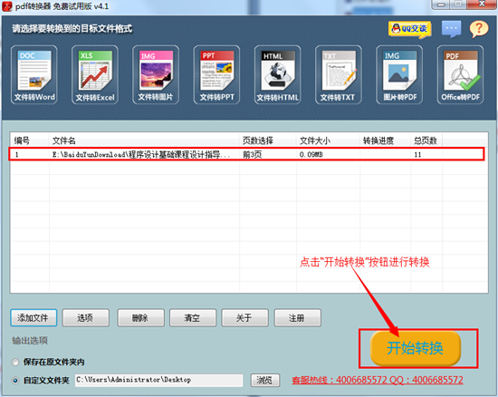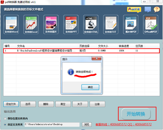 第三步,点击右下方"开始转换"按钮,等待片刻即可转换完成。