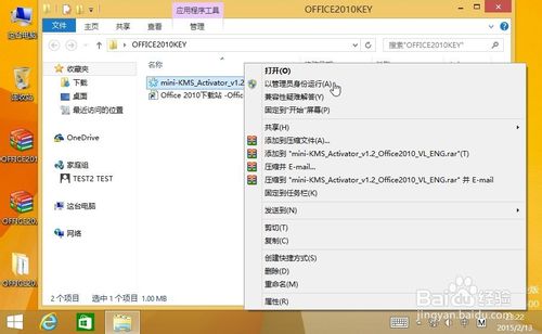 7、下载激活码,然后同样的,解压到当前目录,然后找到里面的程序,一般名称为"mini-KMS_Activator"的字样,鼠标右键点击,选择"以管理员身份运行",在弹出来的小框选择"是",进入安装;