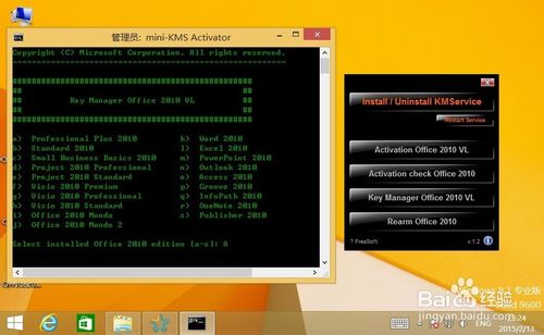 2、点击"Key Manager Office 2010 VL"按钮,弹出来的框中输入"a"等待自动操作,直到显示"Press any key to exit",即可关闭窗口;