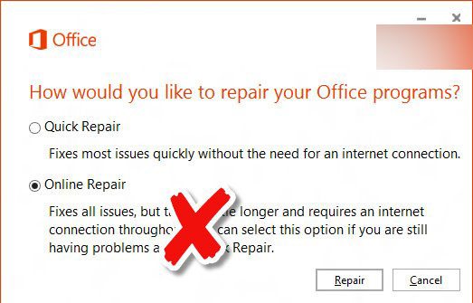 3、如果在使用过程中Office程序出现问题,请不要使用内置的在线修复功能,最好直接卸载重装。